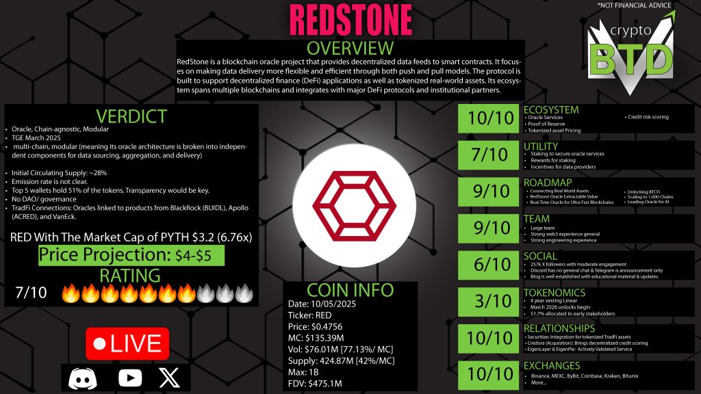 Redstone is technically impressive. It’s solving real problems in DeFi and RWAs. The modular oracle approach could become the new standard. Its growth across chains and protocols proves strong product-market fit.