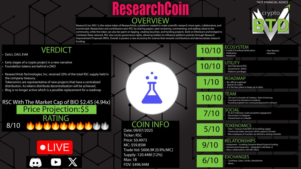 If DeSci becomes a major pillar of the next crypto cycle, ResearchHub and ResearchCoin are well-positioned to lead the charge.